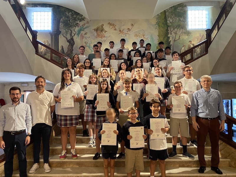 El coordinador de la oficina de Programas Internacionales, Jorge Roig junto con miembros del equipo directivo del centro de las diferentes etapas y la dirección general, Ángel Civera, han estado compartiendo y felicitando a todo el alumnado que ha obtenido este reconocimiento oficial, que tendrán ya en su perfil de competencia lingüística para su futuro.