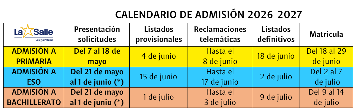 El plazo límite para enviarlo a paternacolegio@lasallevp.es es para la ESO el 27 de junio y para Bachillerato el 4 de julio.