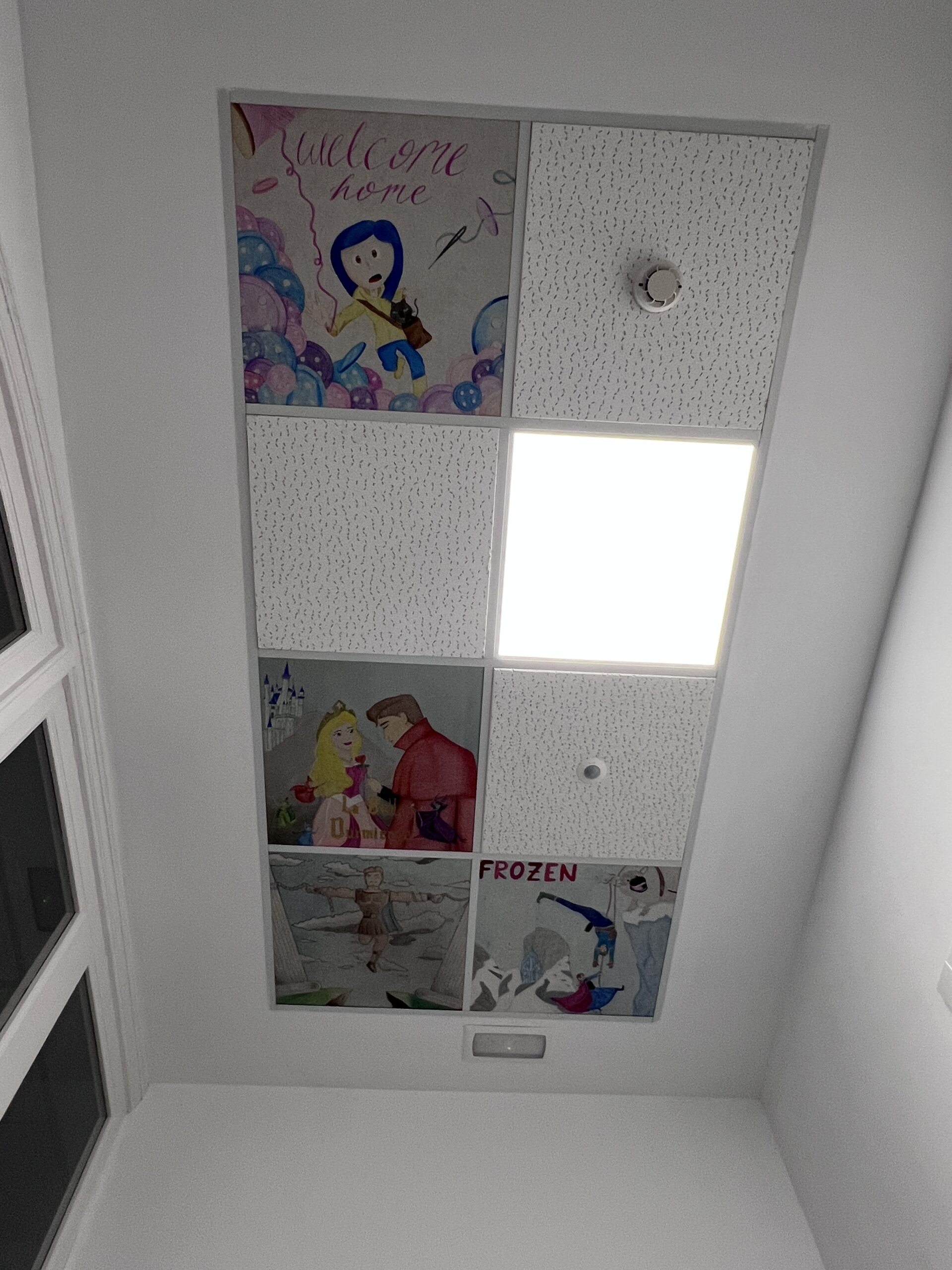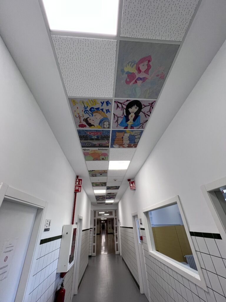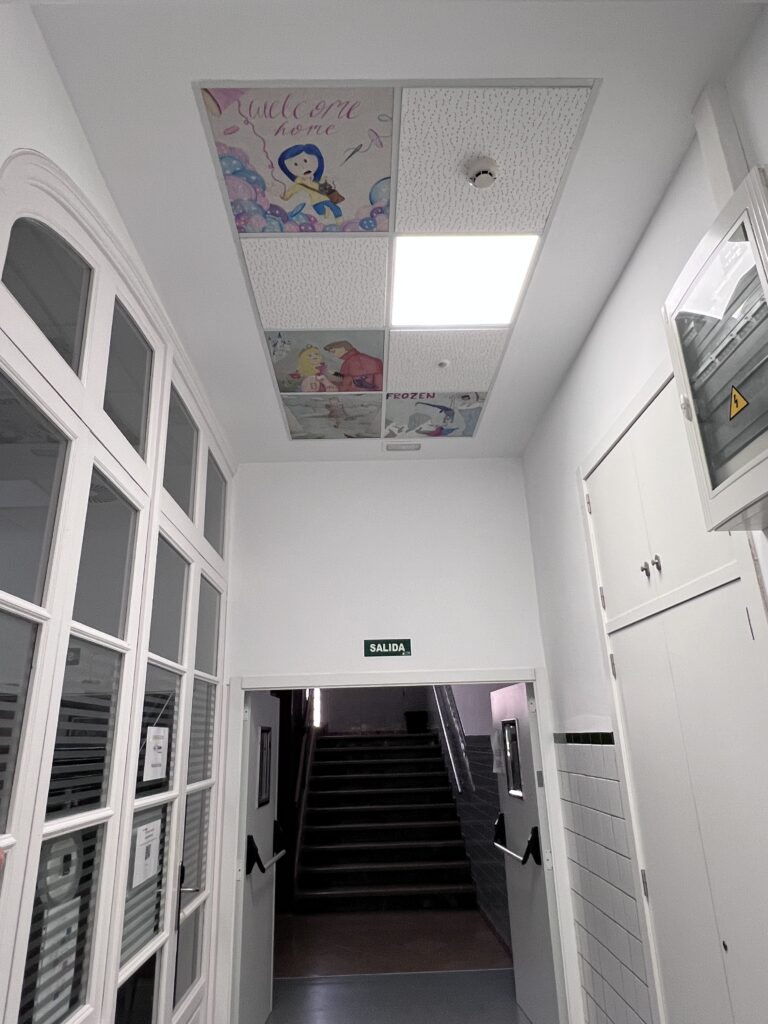 El Colegio La Salle de Paterna vuelve a mirar hacia arriba… y esta vez, con motivo. Los techos de diferentes zonas del centro se han convertido en auténticas galerías de arte gracias al trabajo del alumnado de 1º de Bachillerato dentro de la asignatura de Proyectos Artísticos.