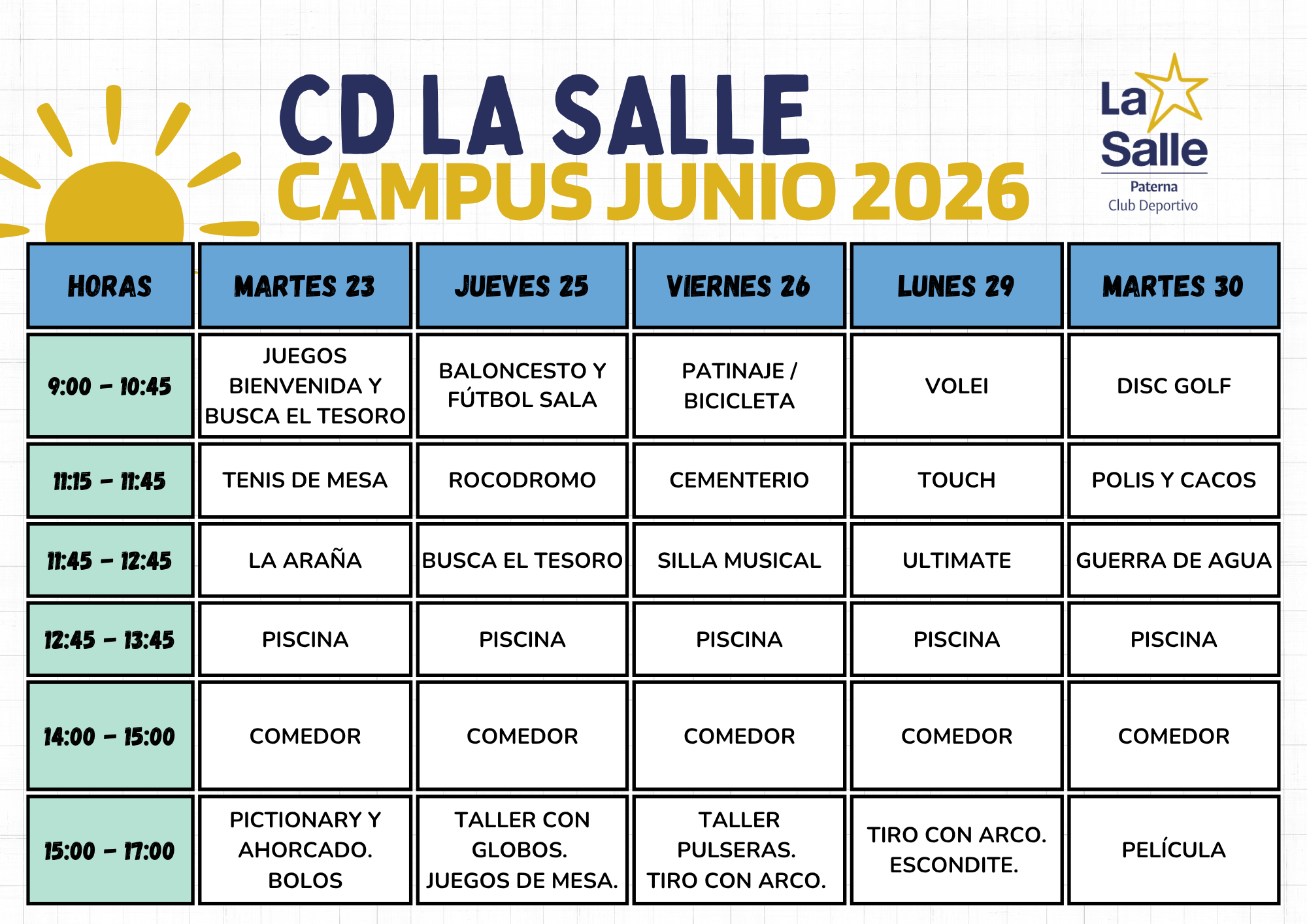 Desde el Colegio La Salle y el Club Deportivo La Salle ofertamos el CAMPUS DEPORTIVO DE JUNIO.