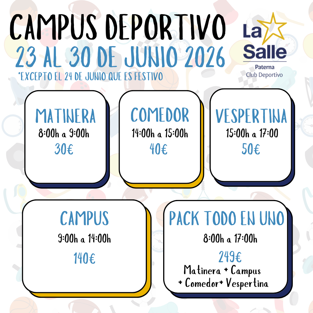 Las fechas son del 23 al 30 de junio (excepto el 24 de junio por ser festivo) de 2026. Nuevos deportes, actividades y talleres están pensados para el alumnado que quiera pasar una semana de deporte, ofreciendo servicio de matinera desde las 8:00 horas y vespertina hasta las 17:00 horas. A continuación encontrarán información sobre actividades, horarios, precios y la inscripción, que será hasta el lunes 15 de junio.