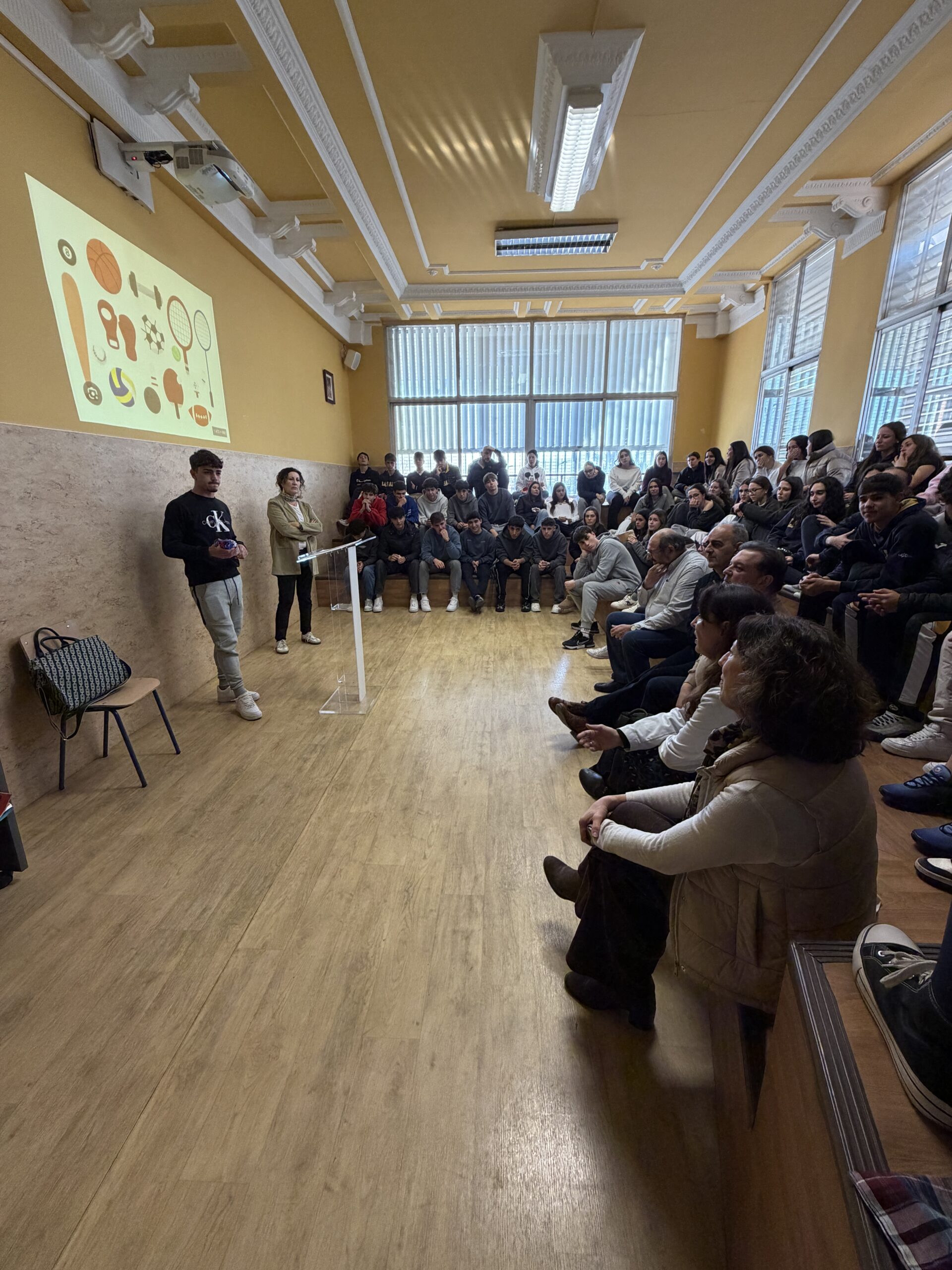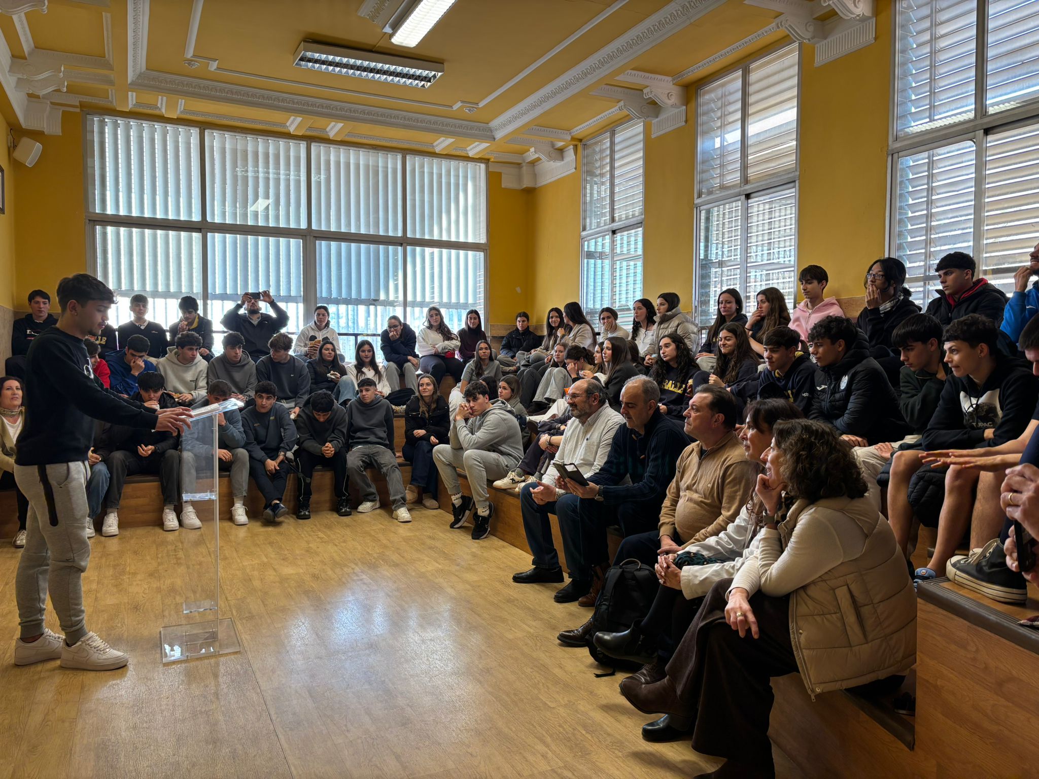 El público, alumnado y profesorado de 4º de ESO a 2º de Bachillerato, participó en la ronda de preguntas finales y pudo conocer la relación de Pablo con el deporte y cómo es capaz de integrarlo en sus rutinas diarias. Todo un ejemplo del diálogo y reflexión que genera nuestra ‘Tribuna de los oradores’.