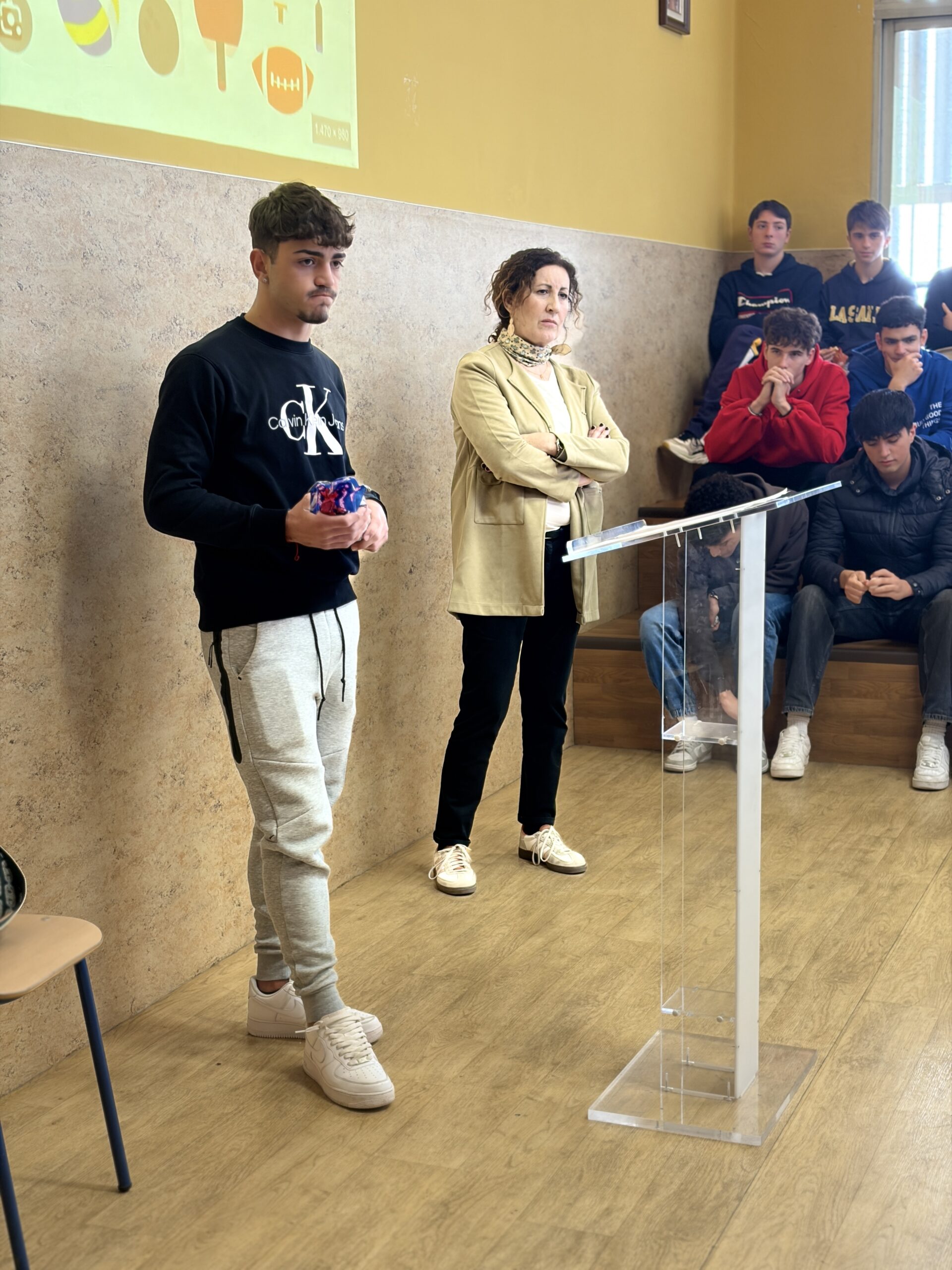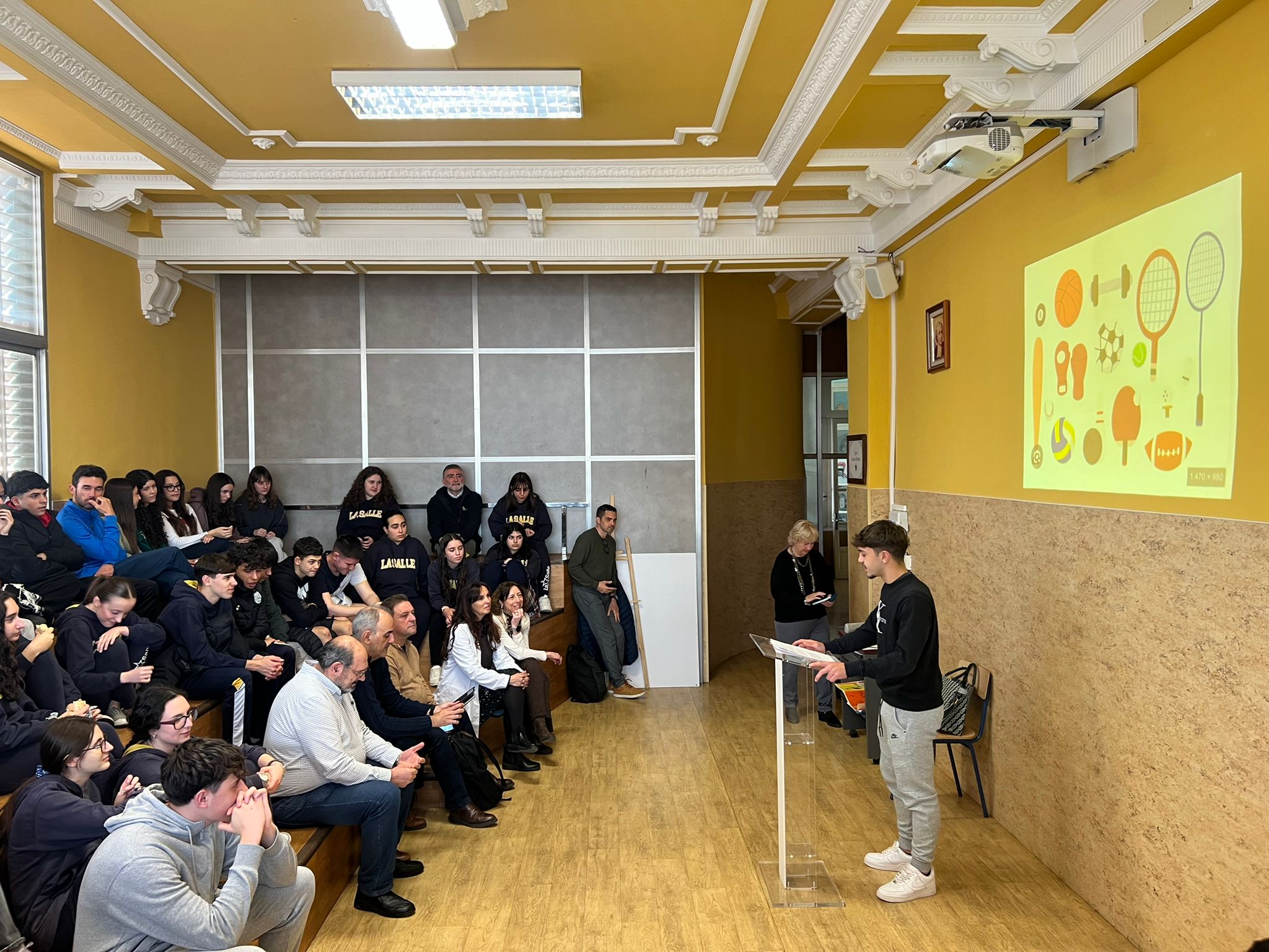 La oratoria de la semana pasada la protagonizó Pablo Ibáñez, alumno de 1º de Bachillerato D. El Bachillerato es una etapa en la que nuestros jóvenes se enfrentan a un gran reto académico y Pablo explicó que el deporte en nuestras vidas es un hábito que hemos de ser capaces de mantener incluso en momentos de mucho trabajo. En su exposición, explicó con detalle los beneficios extraordinarios que aporta en cada uno de nosotros, especialmente en el caso de los más jóvenes.