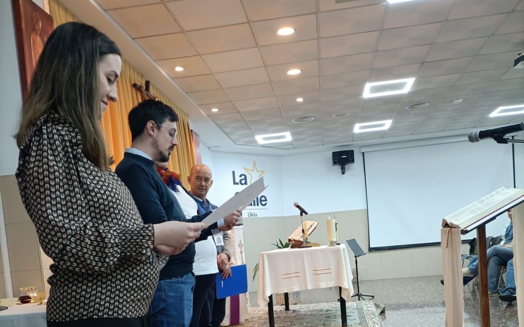 El domingo 23 de marzo en Lliria se realizó la ceremonia de Asociación de dos nuevos Asociados a la Misión lasaliana: Felipe Cremades y Laura Álvarez.  Felipe es profesor de secundaria del Colegio La Salle de Paterna y Laura desarrolla su faceta como maestra en el Colegio Pureza de María.