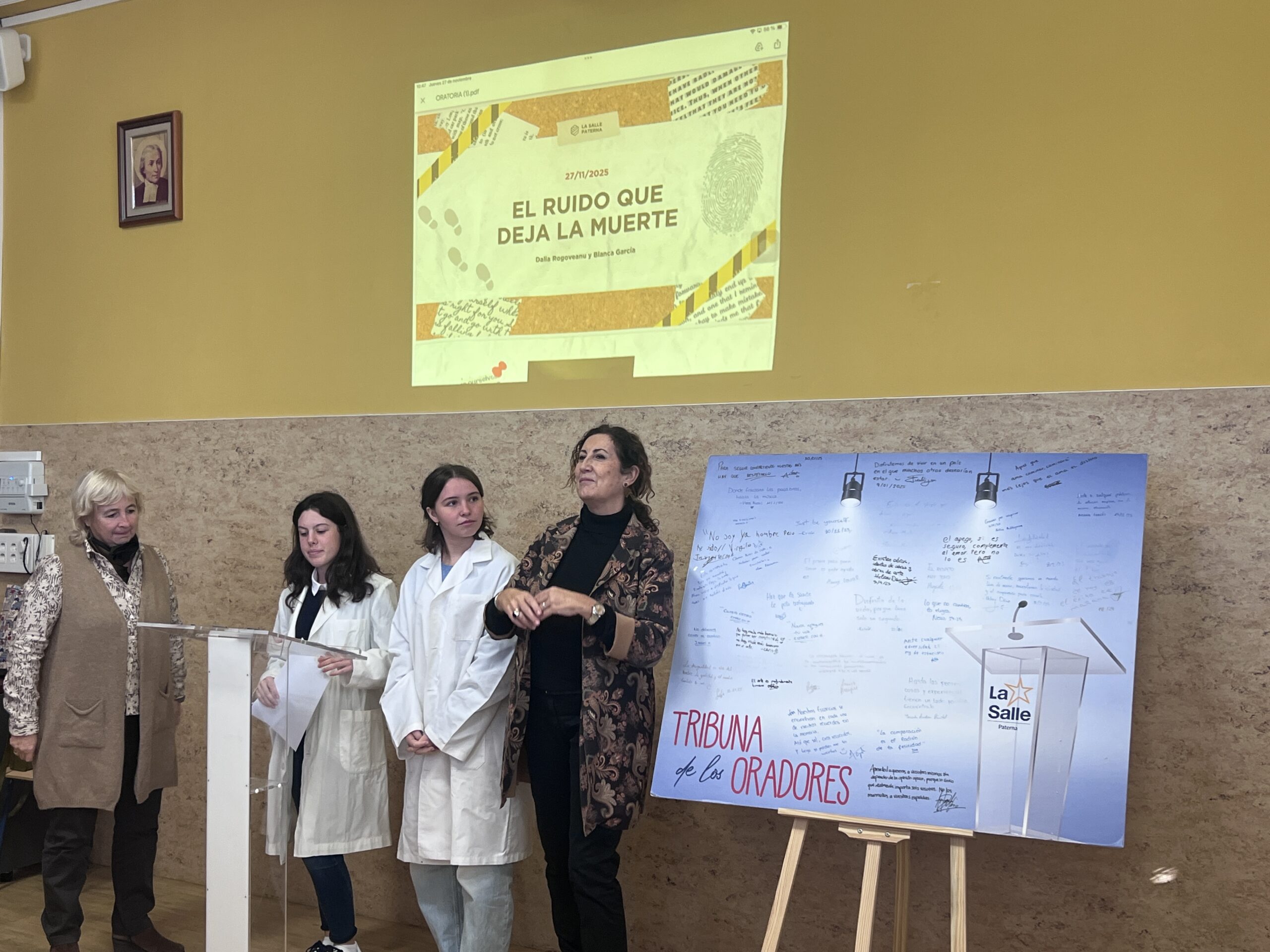 Esta curso ya hemos inaugurado una nueva edición de la Tribuna de Oradores, un proyecto pedagógico de La Salle Paterna que invita al alumnado a enfrentarse al reto de hablar en público, construir pensamiento propio y compartirlo con la comunidad educativa. Y lo hemos hecho con dos intervenciones tan distintas como complementarias, unidas por un hilo común: mirar la vida con profundidad, sin miedo y con autenticidad.