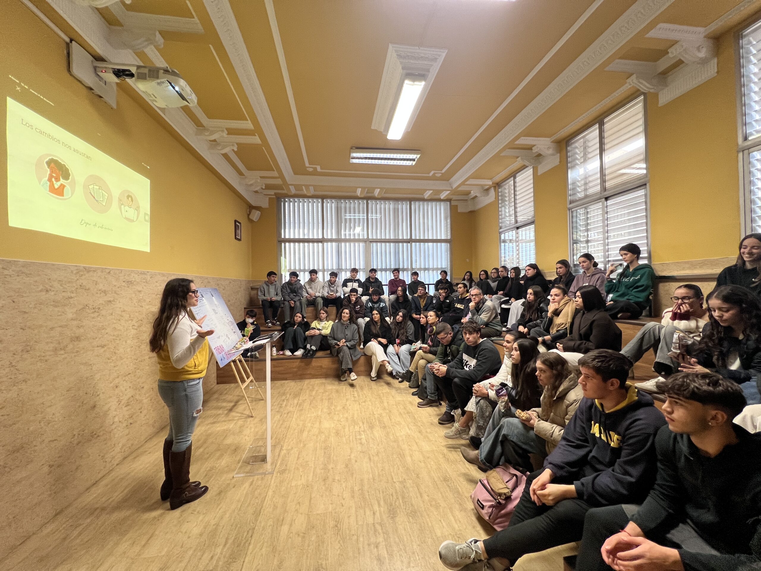La segunda intervención estuvo a cargo de Paula Acedo, alumna de 1º de Bachillerato, con una charla profundamente humana sobre el cambio, el miedo y la valentía de vivir con autenticidad.