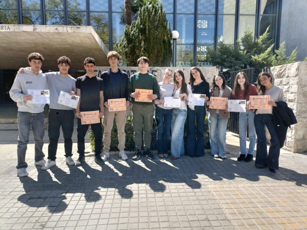 También en la Universitat de València, el alumnado de 2º de Bachillerato participó en las XII Olimpiadas de Historia de España, Geografía y Arte. Tras completar las diferentes pruebas, el grupo consiguió un destacado tercer premio a la mejor nota media entre los centros participantes, un reconocimiento que pone en valor tanto el trabajo del alumnado como la implicación del profesorado en su formación académica.